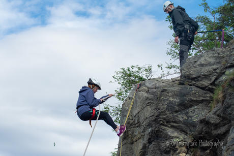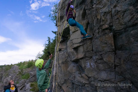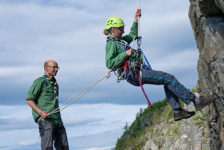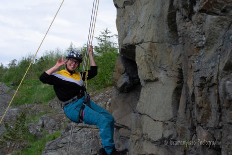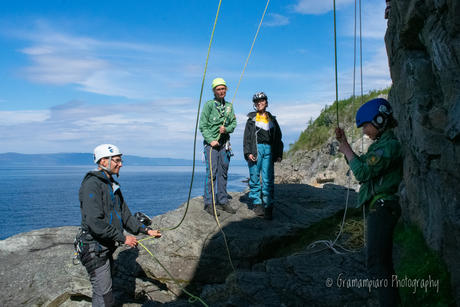 Selvsagt hadde vi både klatring og rappellering, sikkerhet og grilling som en del av opplegget for dagen, og mange fikk tøyd grensene sine og luftet høydeskrekken litt. Andre av oss får aldri nok av høyden og dinglingen i veggen, og må finne våre egne måter å gjøre det litt ekstra spennende på :)