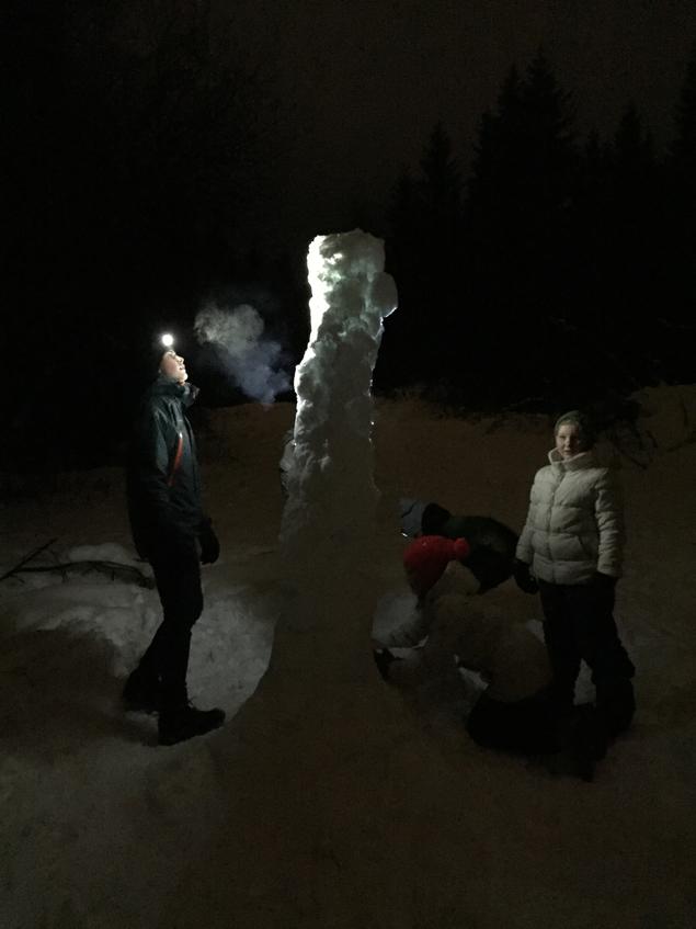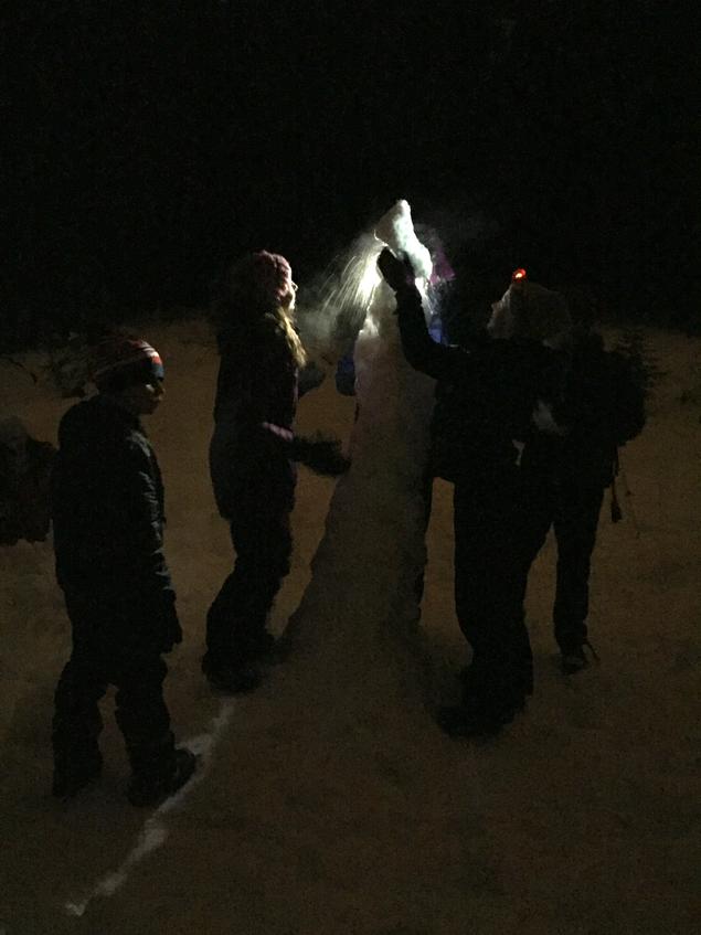 Vi lagde snølykter og andre snøskulpturer og vandrerne hadde konkurranse i høydebygging samt bålkonkurranse.