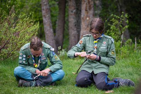 1. Speiderne skulle få øvelse i surringer og leirbygging